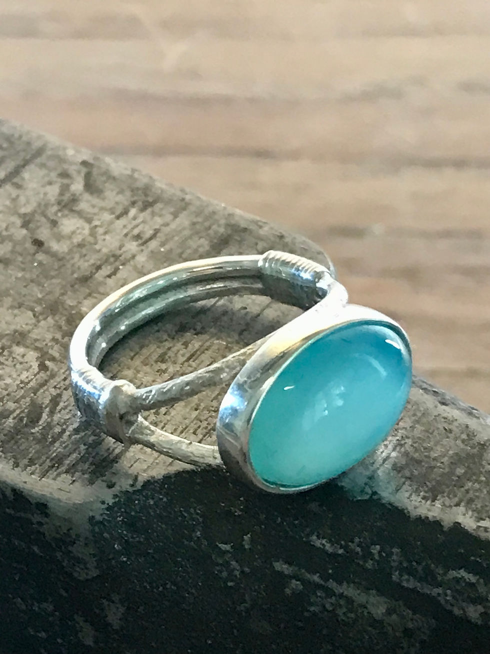 Chalcedon Ring 925er Sterling Silber handgeschmiedet